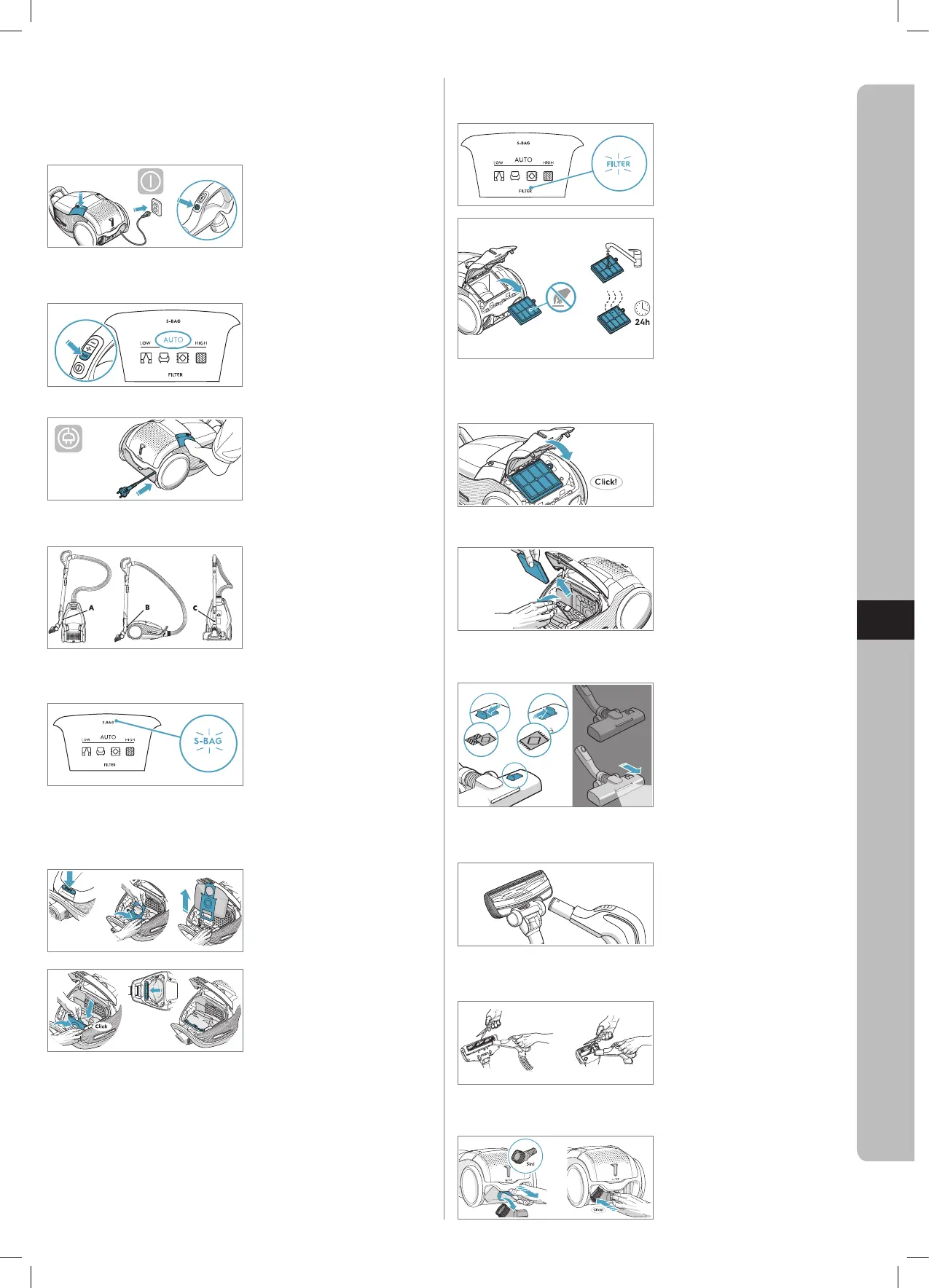 NB: Kad iedarbināsiet putekļu sūcēju pēc s-bag maisiņa nomaiņas, S-BAG