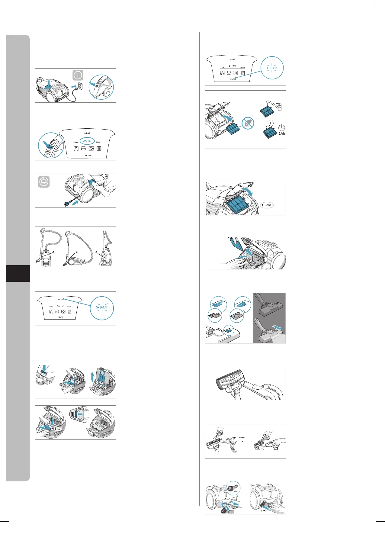 DĖMESIO! Kai paleisite siurblį, pakeitę maišelį „s-bag“, praeis 10 sekundžių, kol