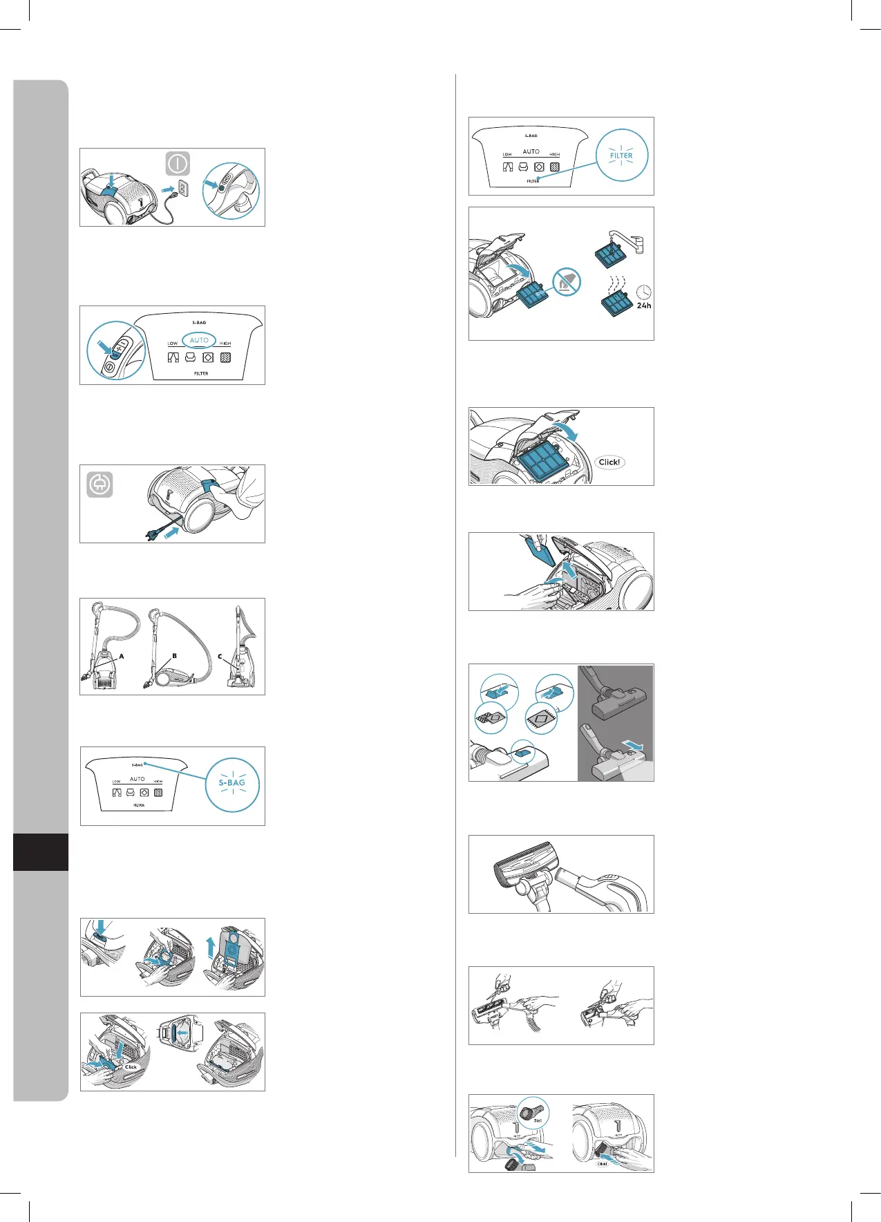 Примечание. Заменяйте мешок для сбора пыли s-bag всякий раз, когда индикатор S-BAG