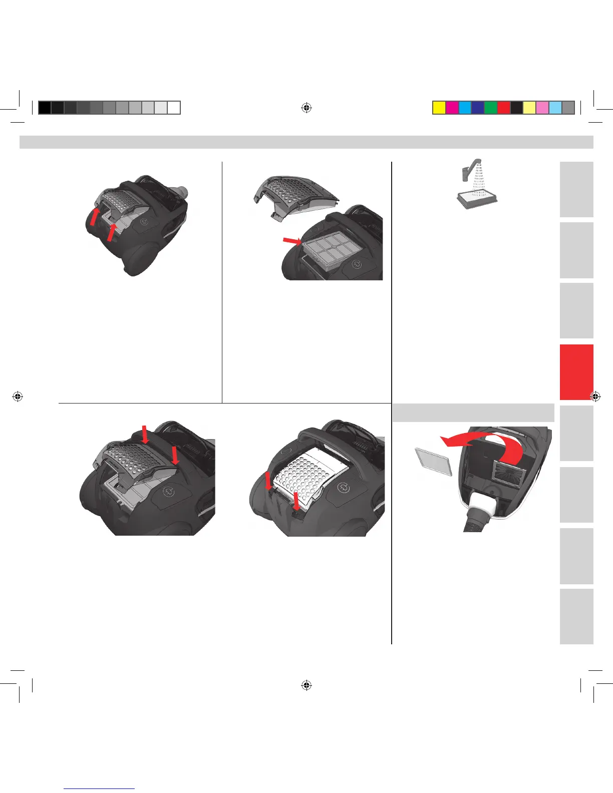 Popchnij pokrywę do przodu i dociśnij ją. Pociągnij za wypustkę i wyjmij ramkę ltra.