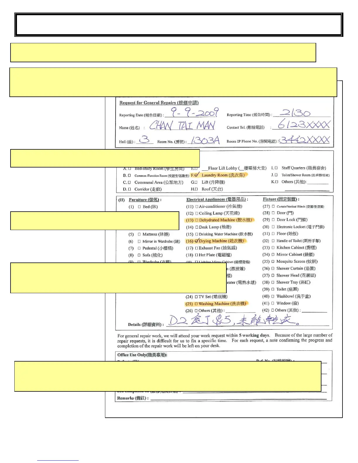 (Please mark the Machine No., e.g. D1 or W5)
