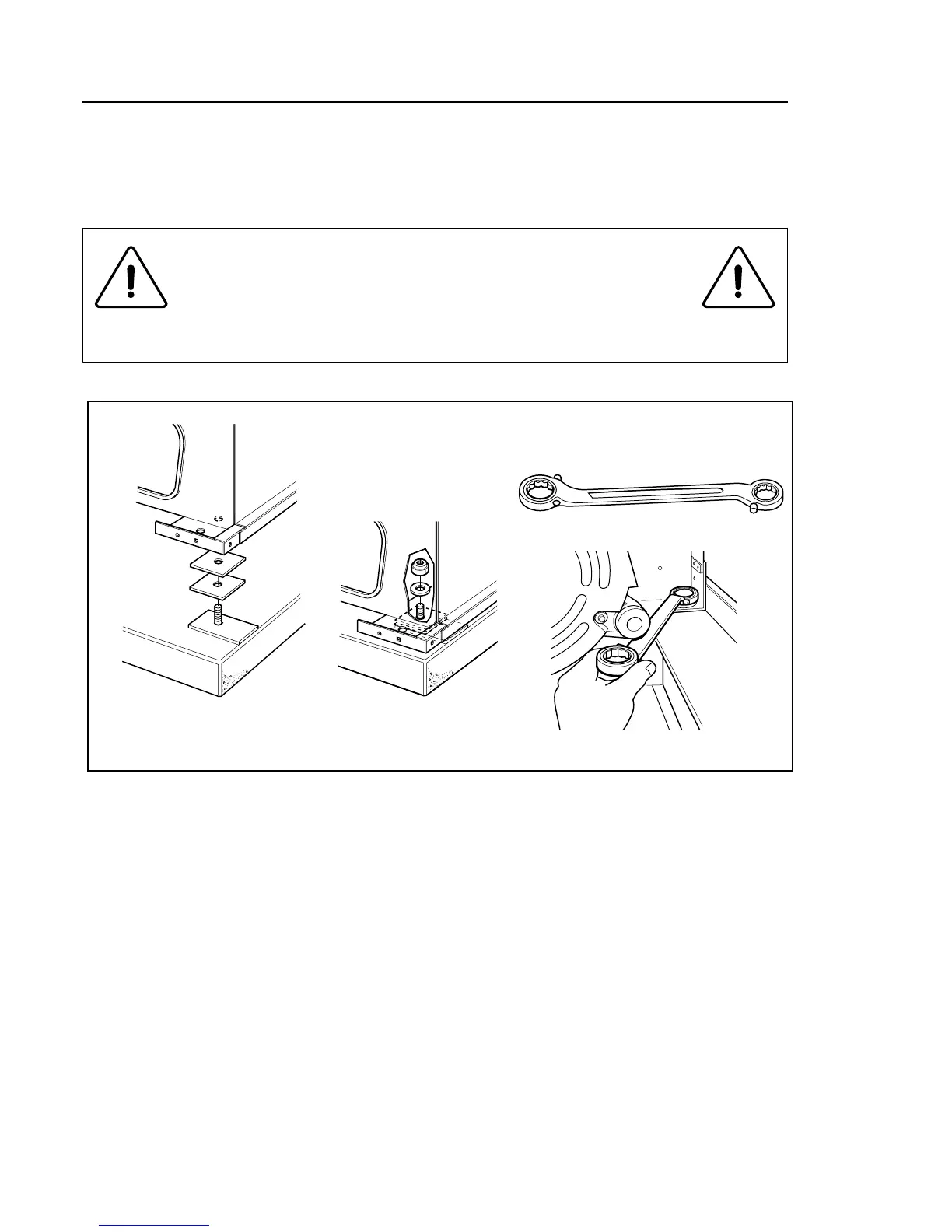 Levelthemachinebyusingstainlessorgalvanizedsteelwashersbetweenthemachineandthe