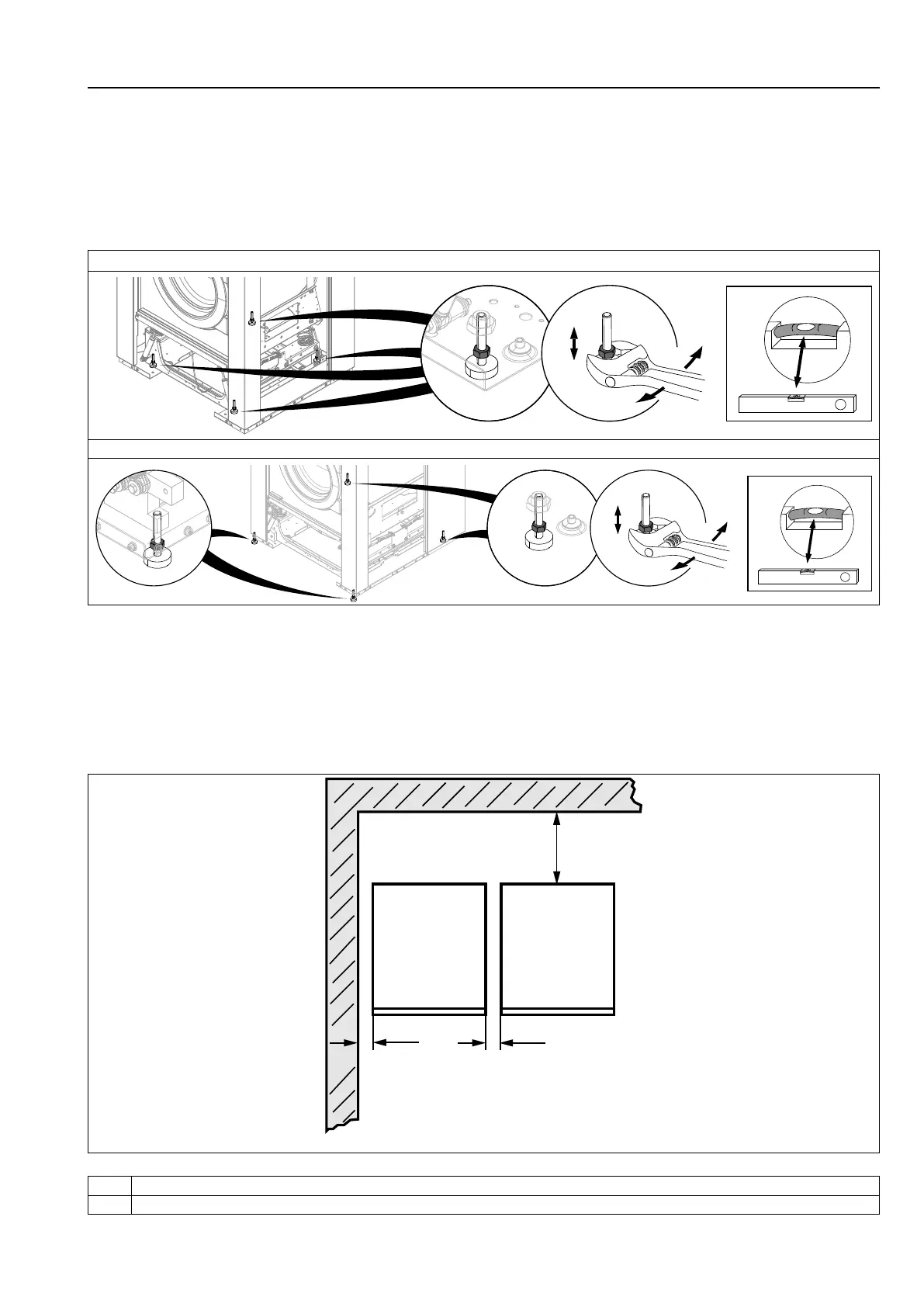 The figure shows minimum distance to a wall and/or other machines.