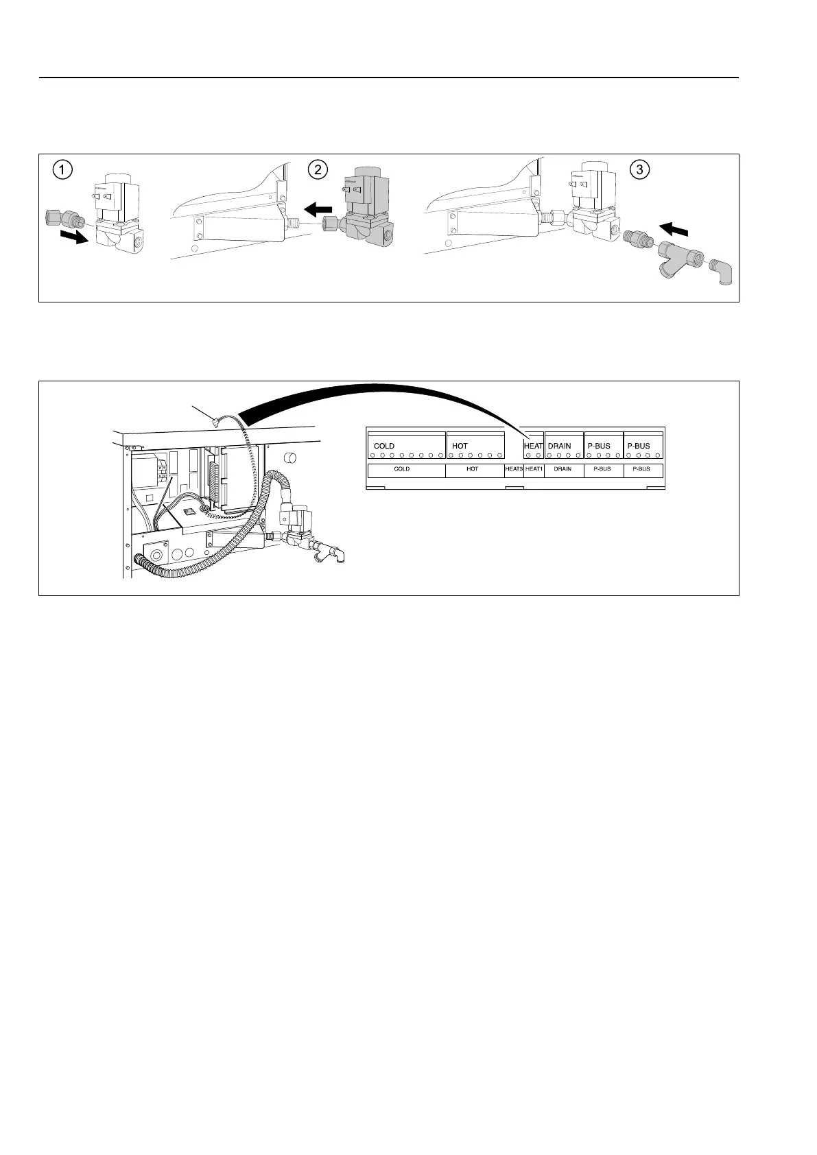 Mount the nipple to the steam valve. Mount the steam valve on the machine. Mount nipple, strainer and elbow. Note