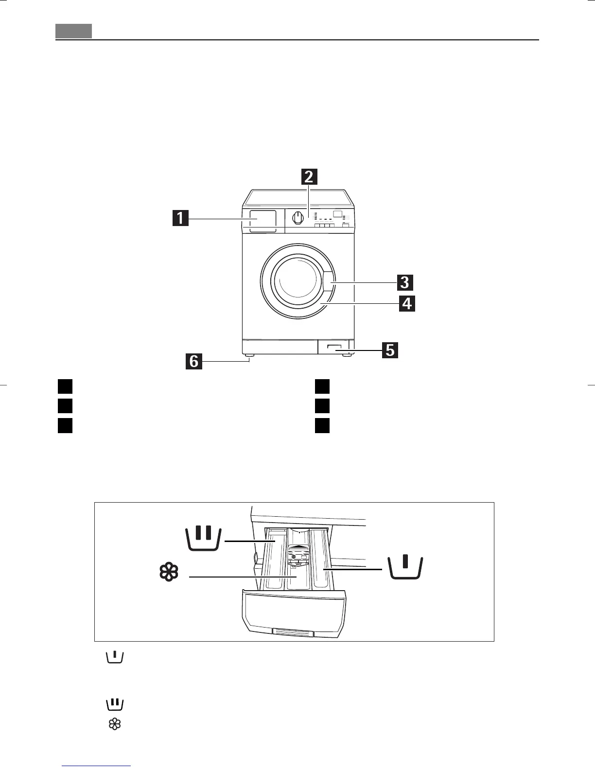 Compartment for liquid additives (fabric softener, starch).