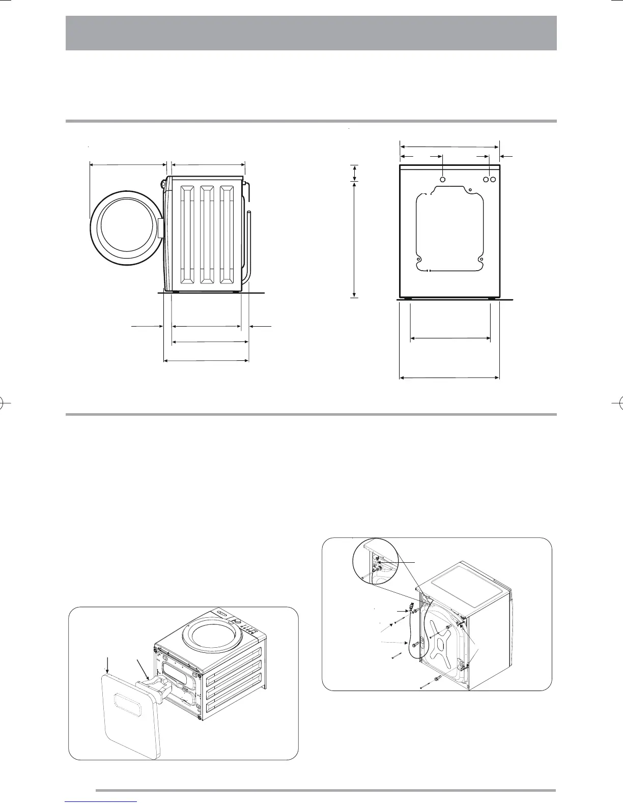 All transit bolts and packing must be removed
