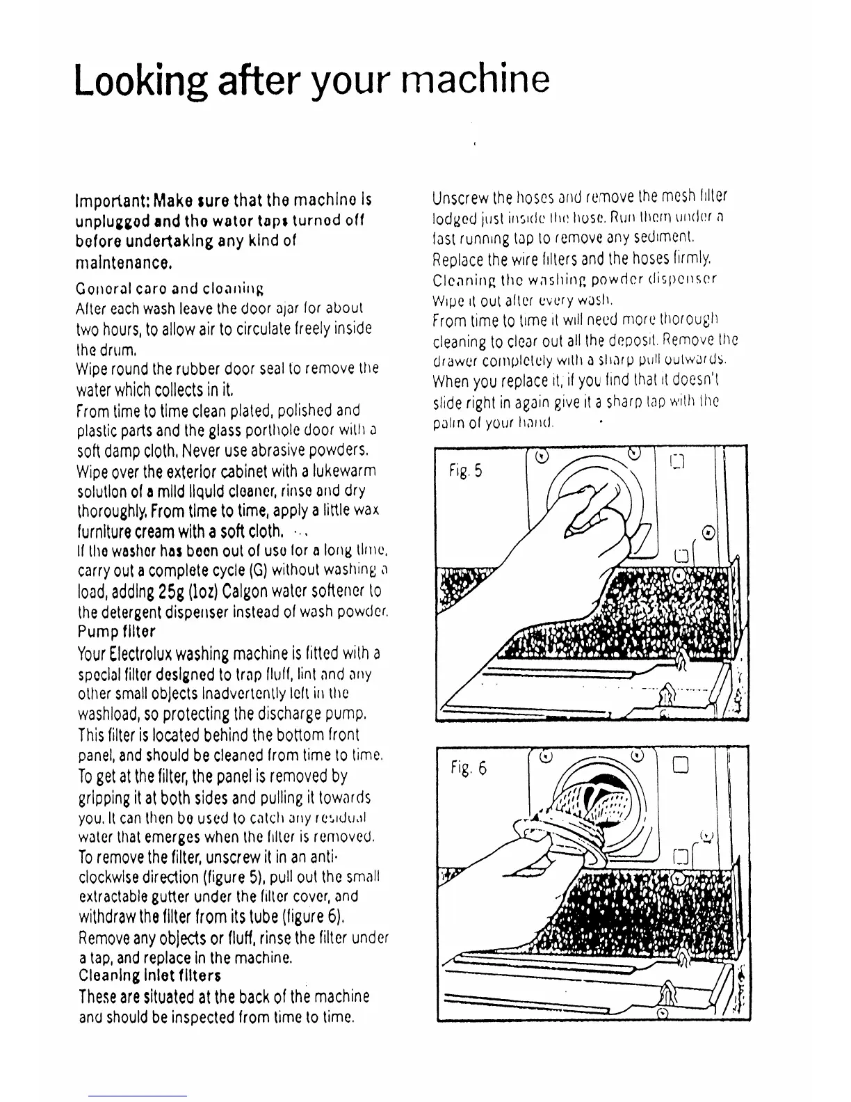 Electrolux WD1034 - Machine Maintenance; General Cleaning Procedures; Filter Cleaning (Pump and Inlet)