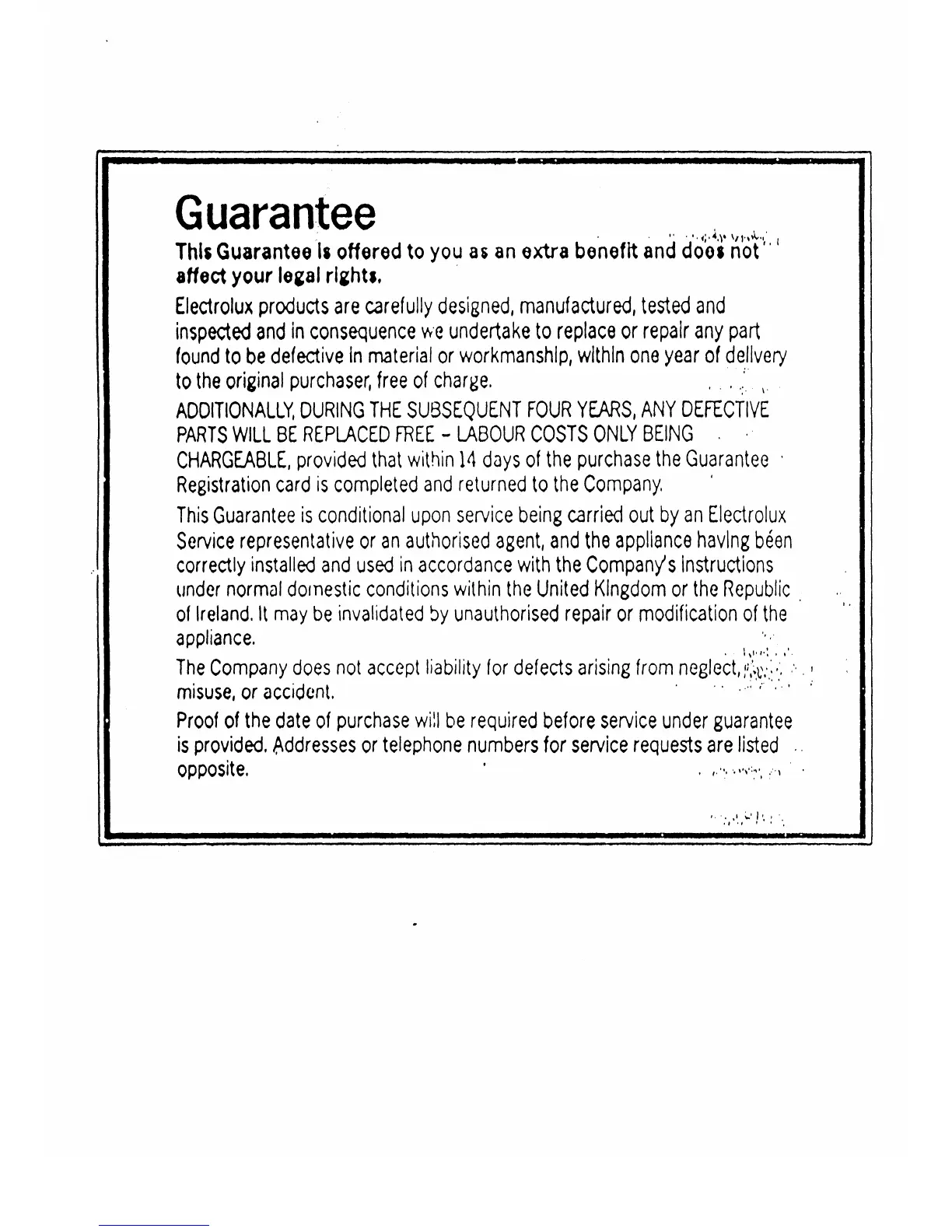 Electrolux WD1034 - Product Guarantee; Understanding Your Guarantee Terms