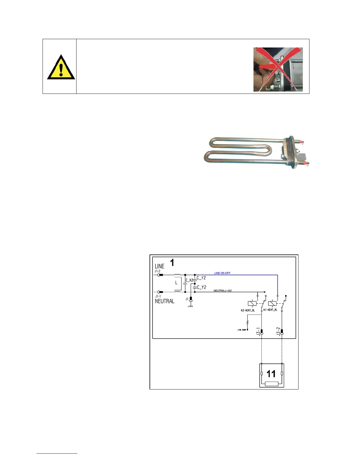 It is powered by two relays (K1, K2) situated in the circuit board. It is fitted with two thermal fuses which trip if