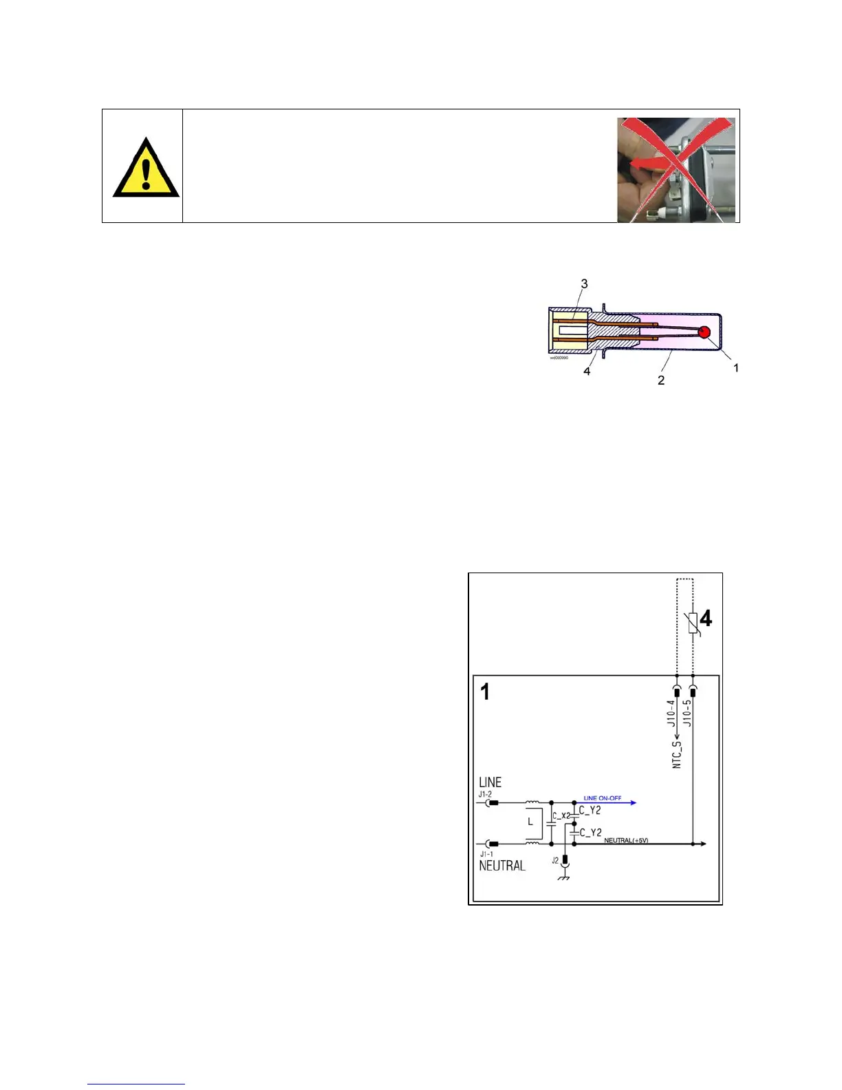 An NTC type probe is used to control the washing temperature: it is built in such a way that its internal