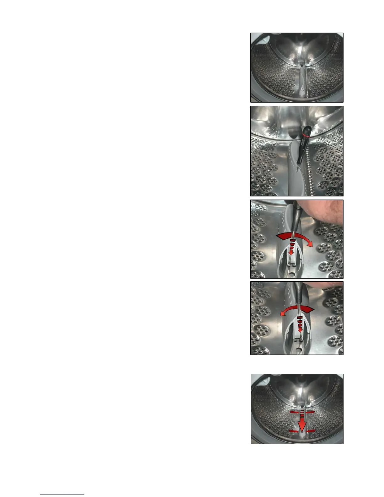The screwdriver with the handle tilted towards the right push the left-hand tab