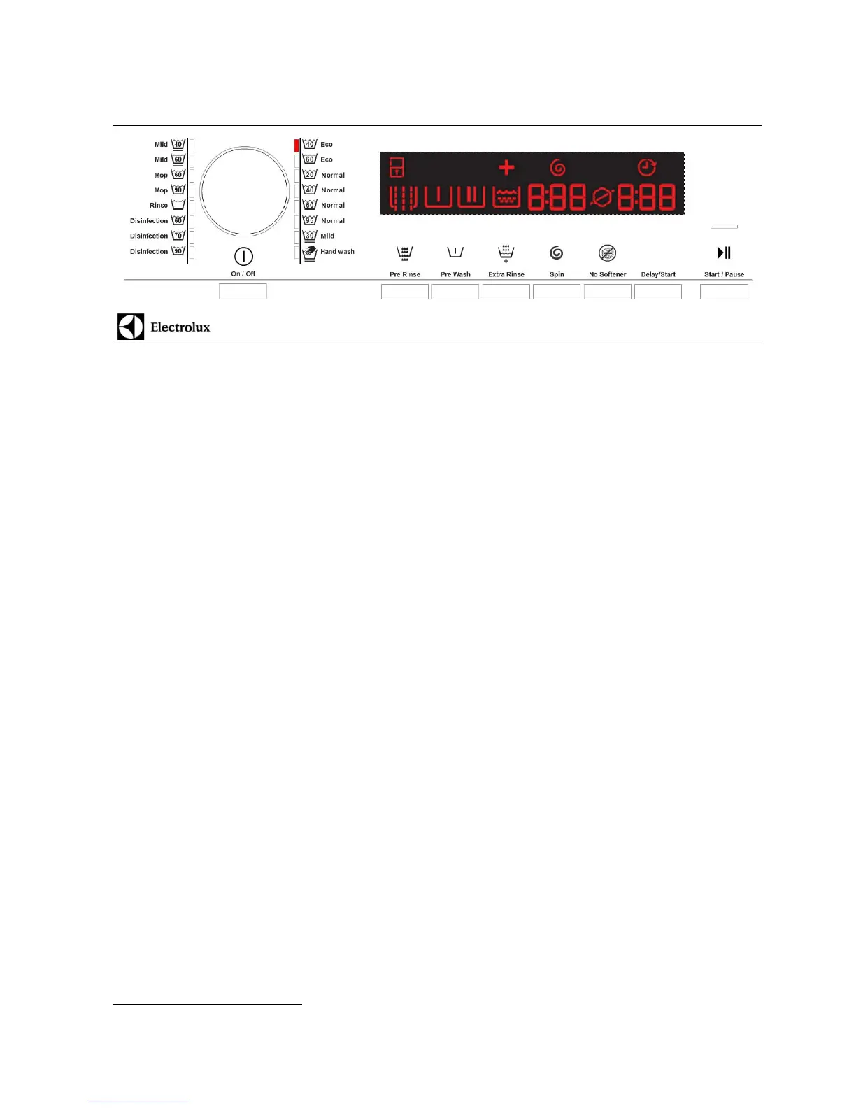 o Pre wash button;