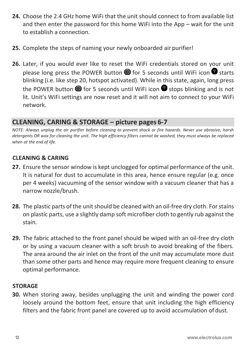 CLEANING, CARING & STORAGE – picture pages 6-7