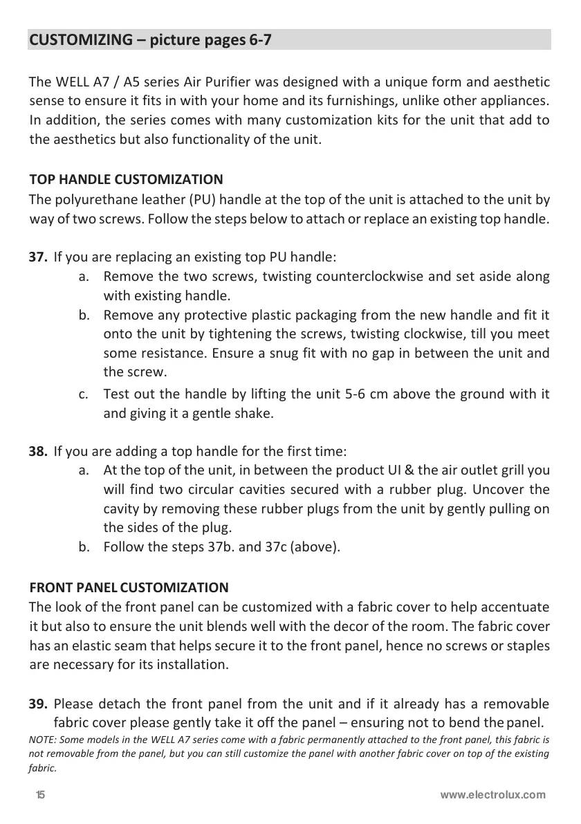 NOTE: Some models in the WELL A7 series come with a fabric permanently attached to the front panel, this fabric is