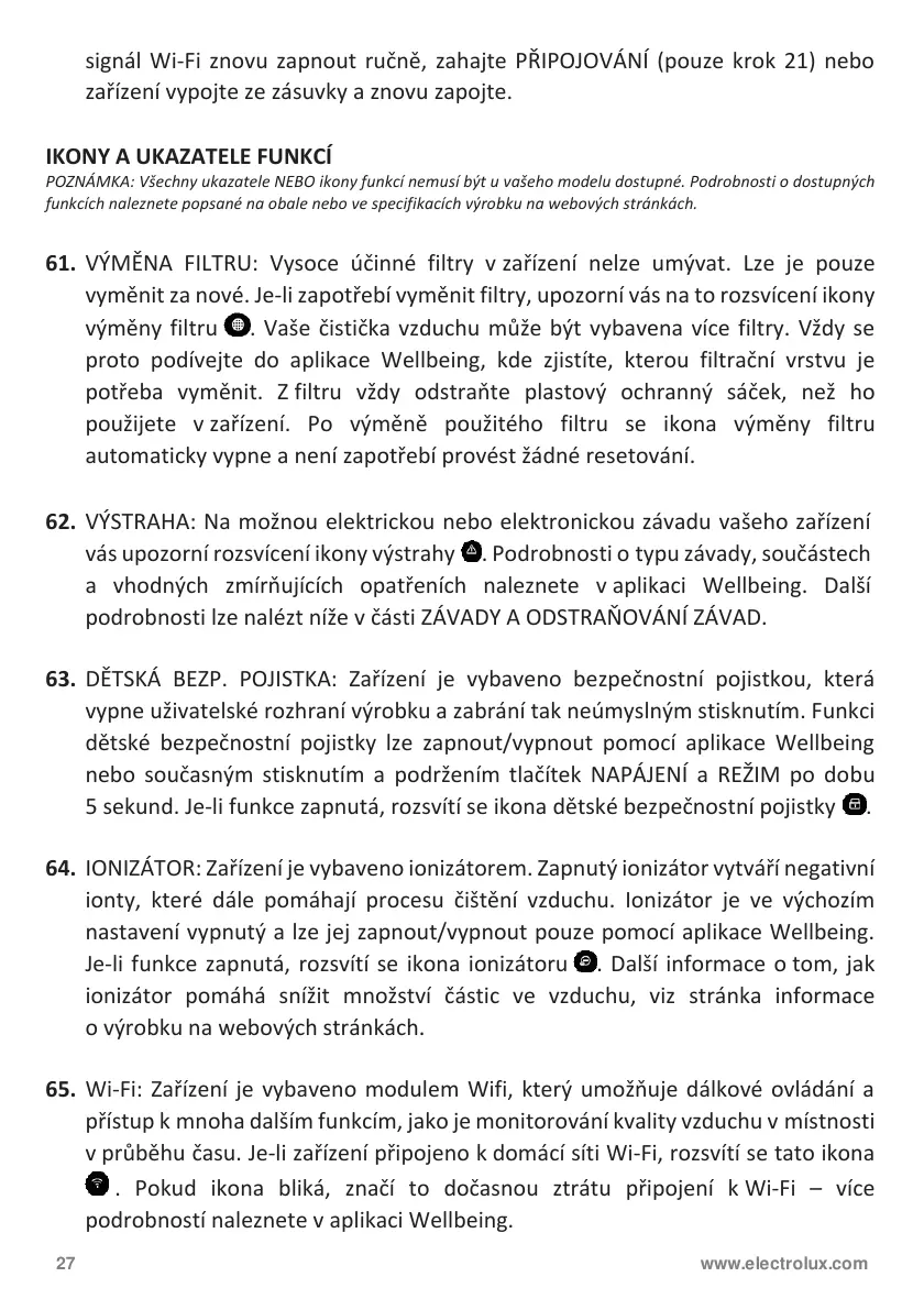 64. IONIZÁTOR: Zařízení je vybaveno ionizátorem. Zapnutý ionizátor vytváří negativní
