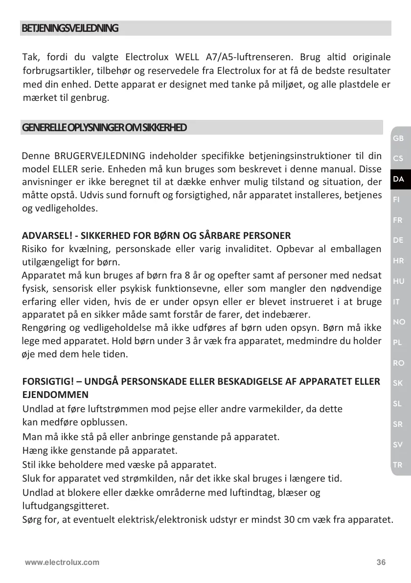 Tak, fordi du valgte Electrolux WELL A7/A5-luftrenseren. Brug altid originale