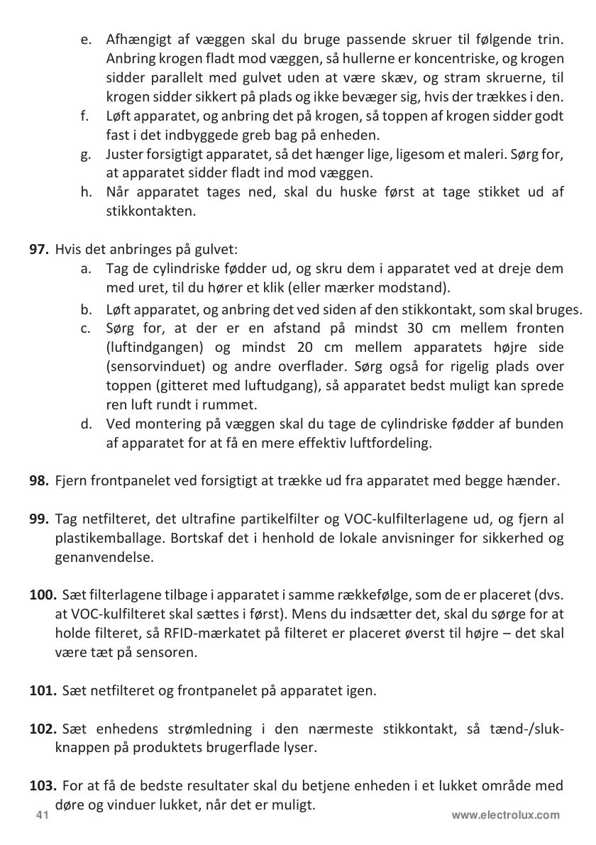 97. Hvis det anbringes på gulvet: