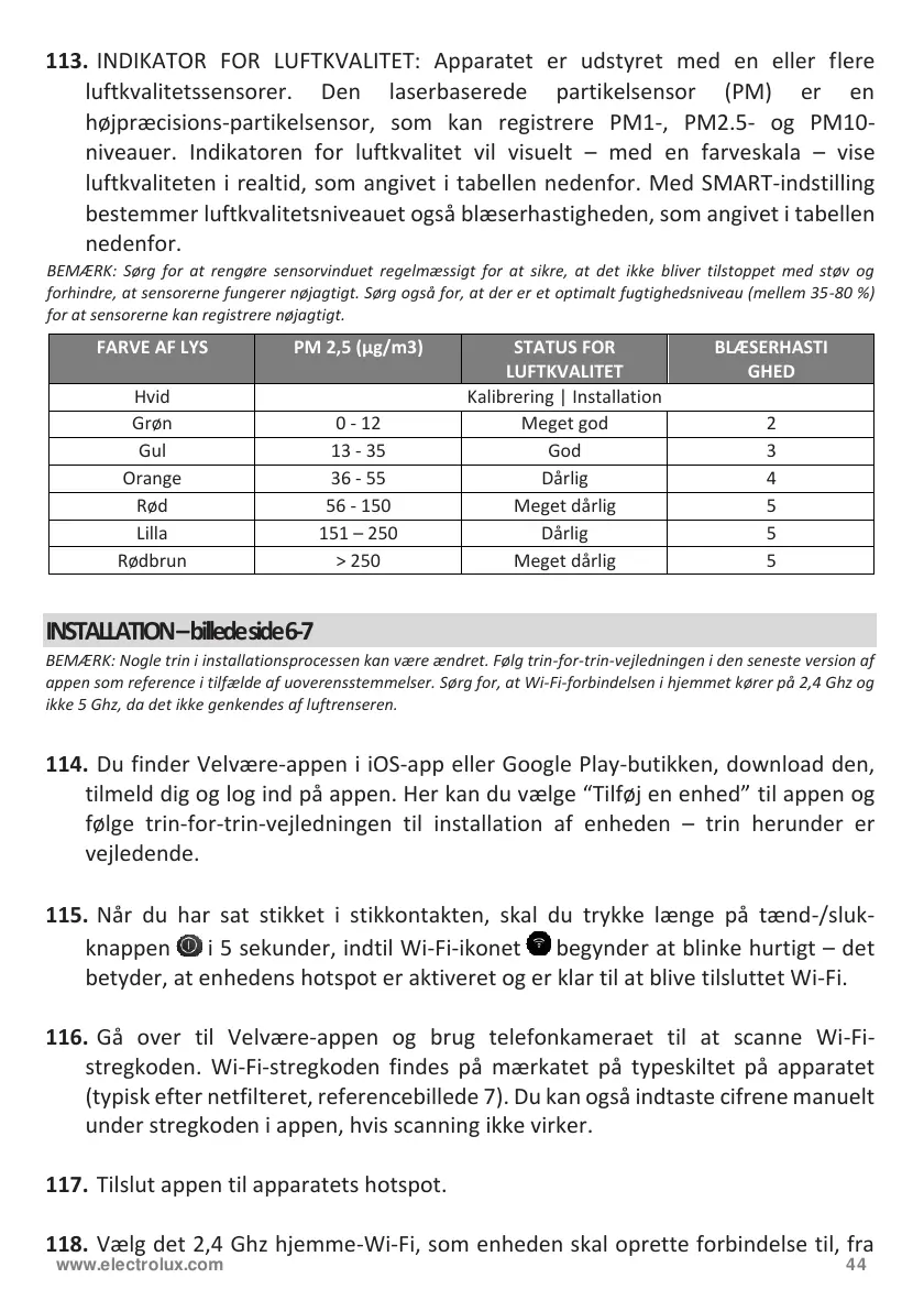 113. INDIKATOR FOR LUFTKVALITET: Apparatet er udstyret med en eller flere