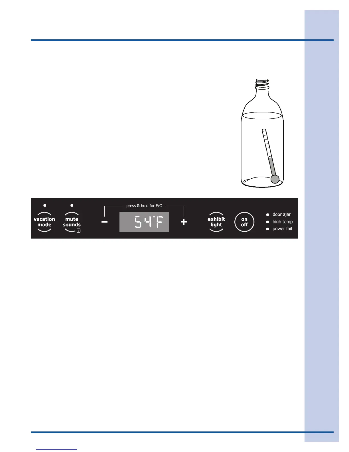 Your wine cooler is shipped in the ON position; however, you may turn it ON or OFF by pressing and