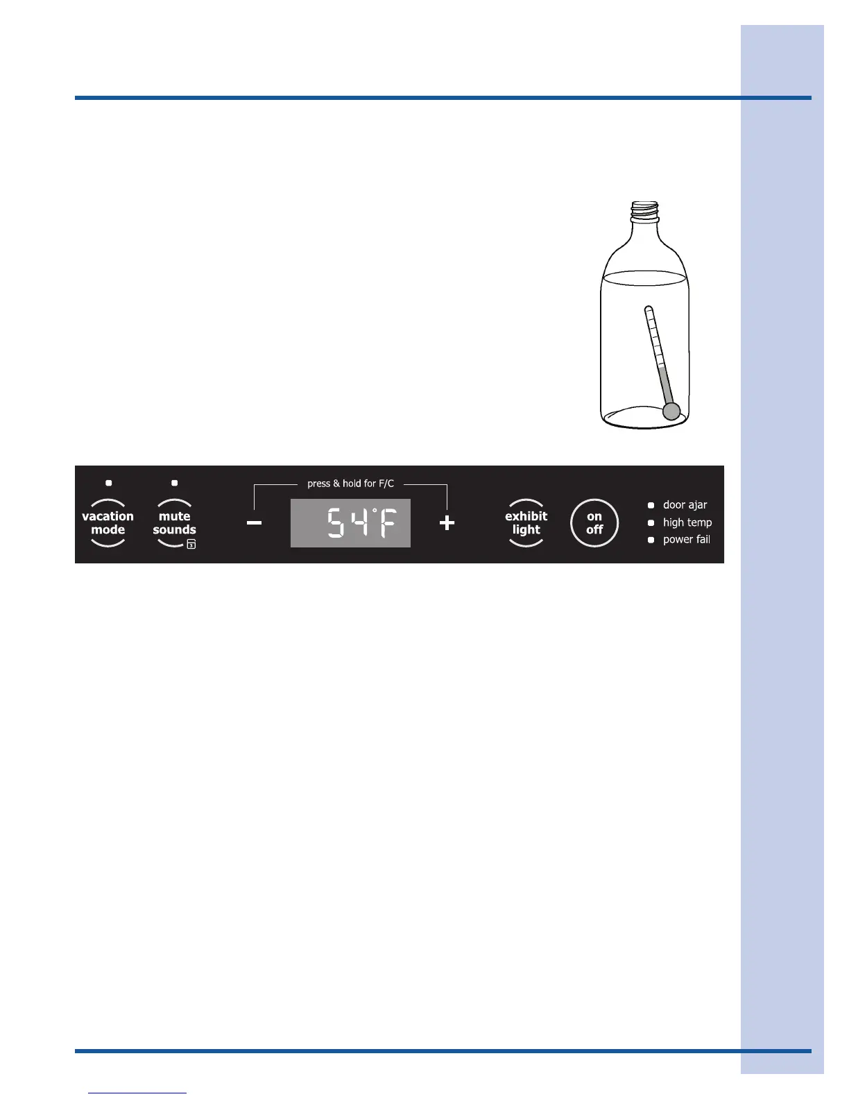 El refrigerador de vinos viene ajustado de fábrica en la posición de encendido (ON). Sin embargo, es posible
