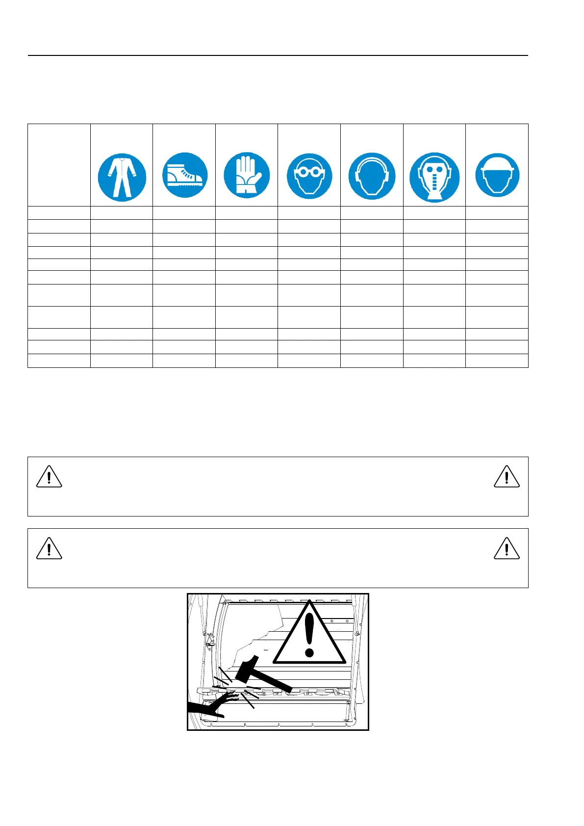 Legend : X : PPE required ; O : PPE available or to be used if necessary.