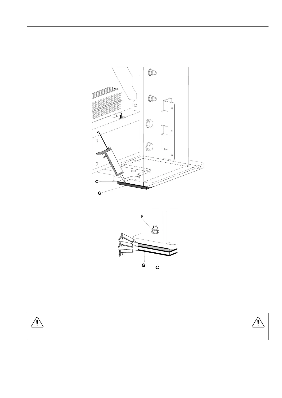 Verify the levels and place if necessary the wedges (C) between the bolster and the soles to stabilize the machine.