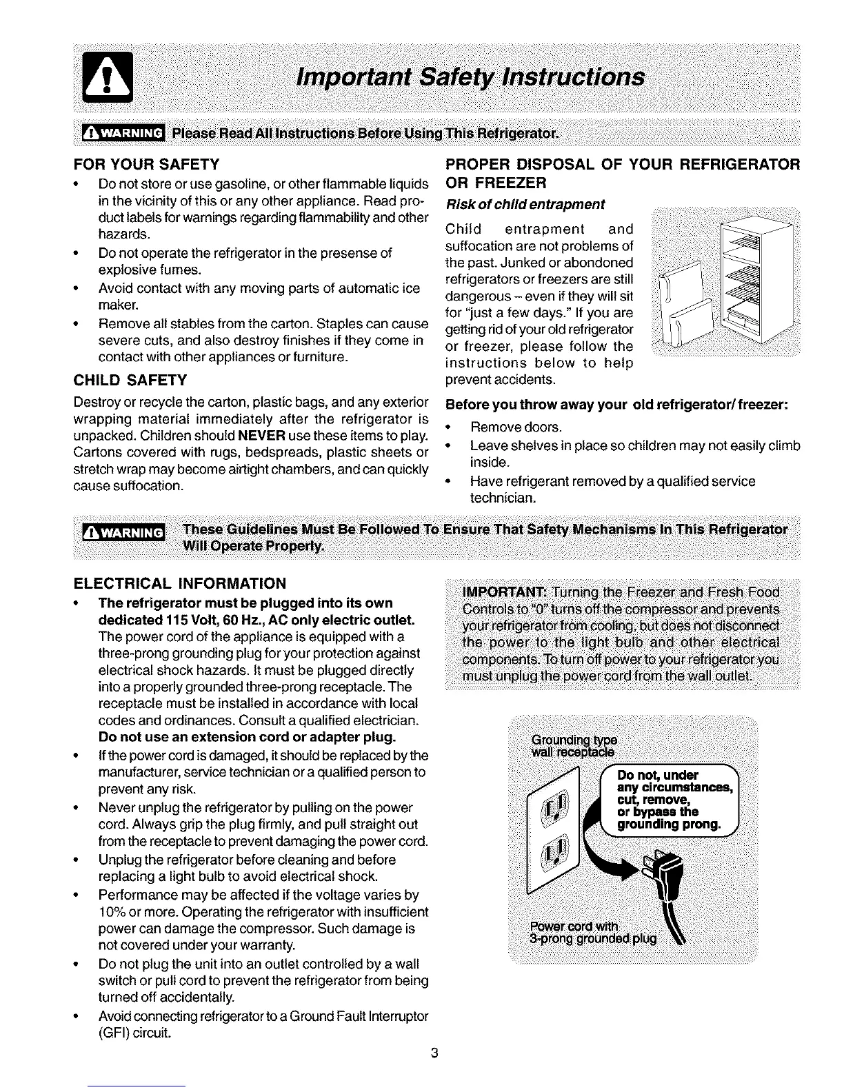 • Avoid connecting refrigerator toa Ground Fault Interruptor