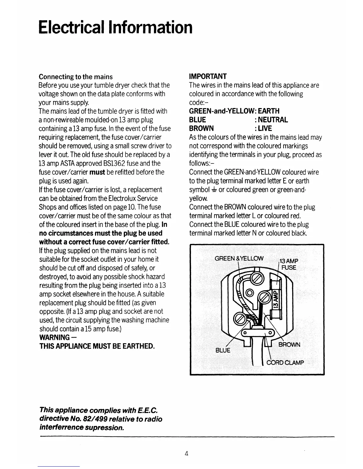 Electrolux WT252 - Electrical Information; Connecting to the Mains