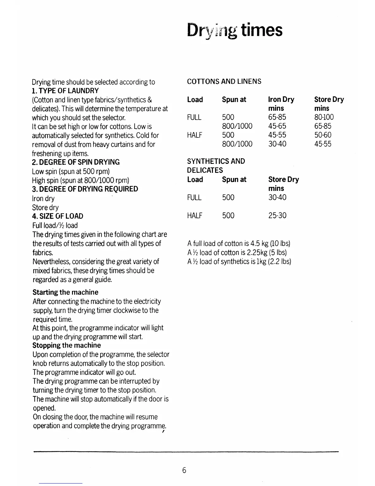 Electrolux WT252 - Drying Times; Laundry Type Selection; Spin Drying Impact; Drying Level Selection