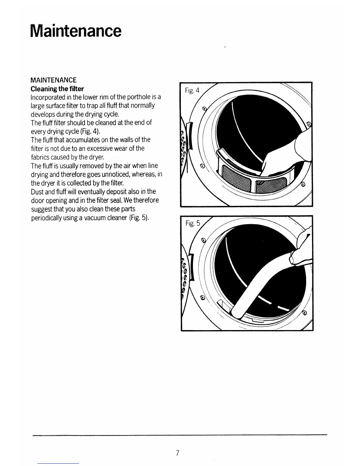 Electrolux WT252 - Maintenance; Cleaning the Fluff Filter