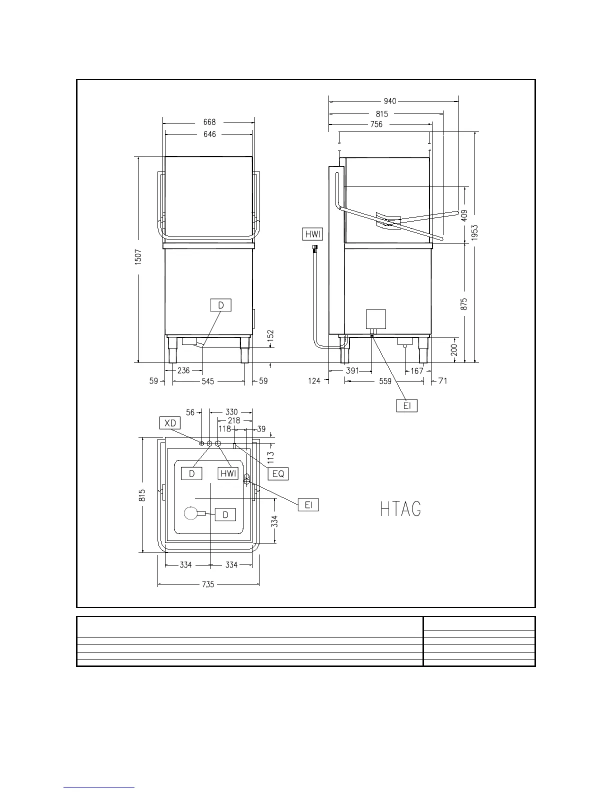 Electrolux WT65E - Installation Diagrams and Legend; Dimensional Drawings; Connection Points Legend