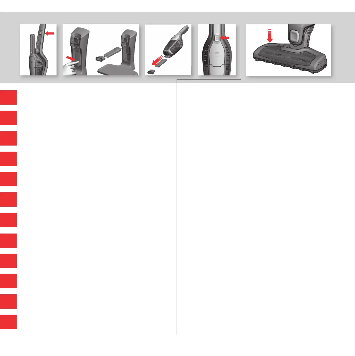charge, ou se  xent sur la poignée 1.Retirez l’aspirateur à main en appuyant sur les boutons de déverrouillage. 2. Fixez