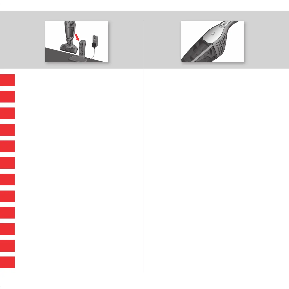 suorituskyvyn takaamiseksi ERGORAPIDO™-imuria kannattaa pitää latauksessa, kun sitä ei käytetä.