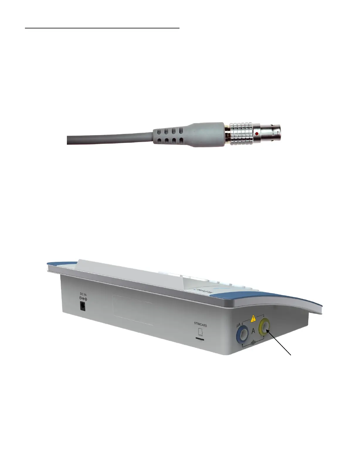 Connect the steel end of the input cable (image below) into the yellow socket of either “Channel A” or “Channel