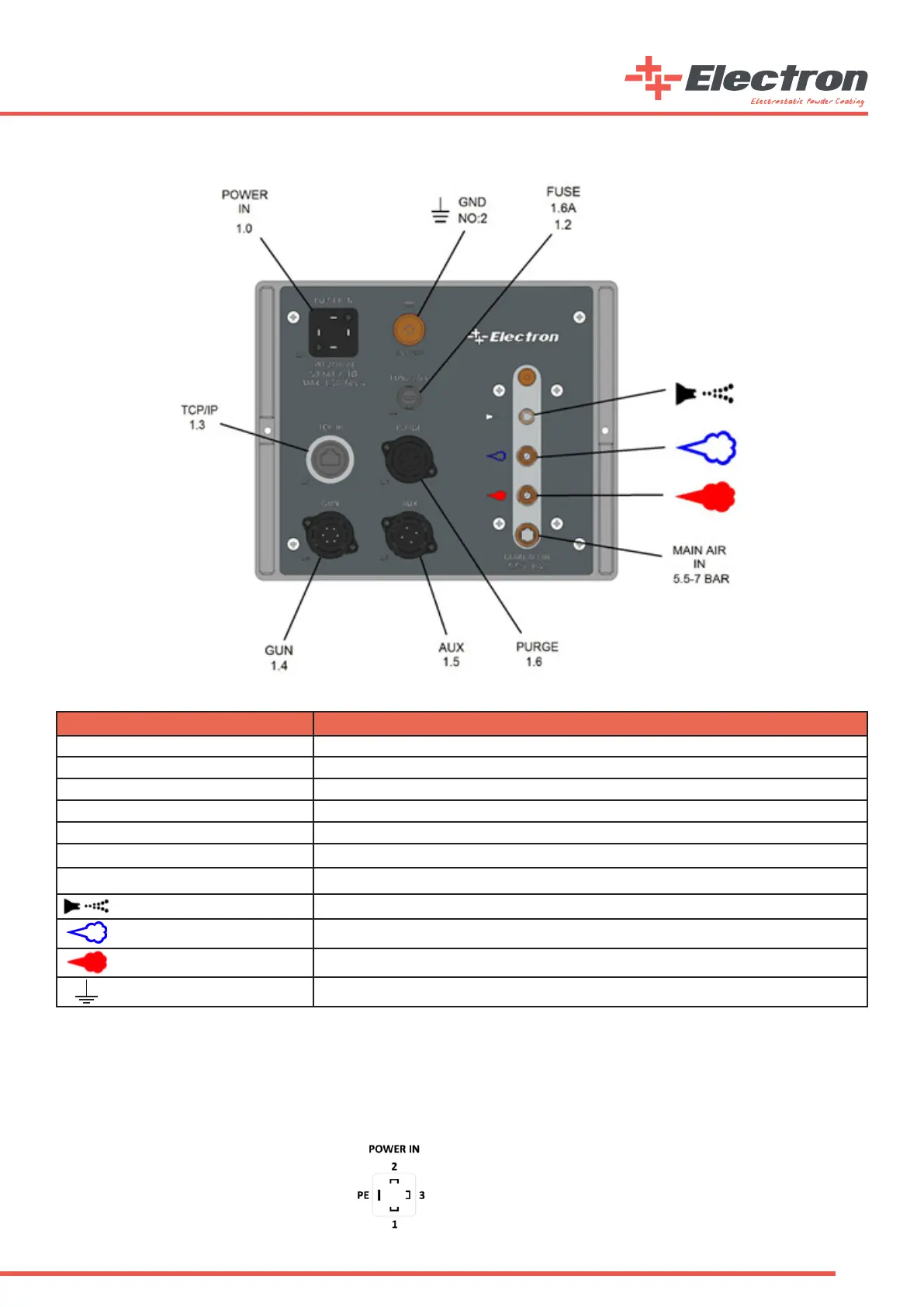 1.0 POWER IN MAIN POWER CONNECTION (100-240VAC, 50-60Hz)