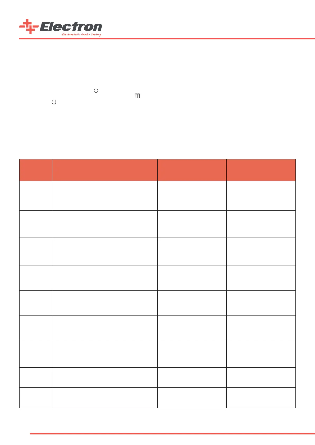 Info: E-COAT Master Powder Coating Control unit always starts with the last used conguration preferences.