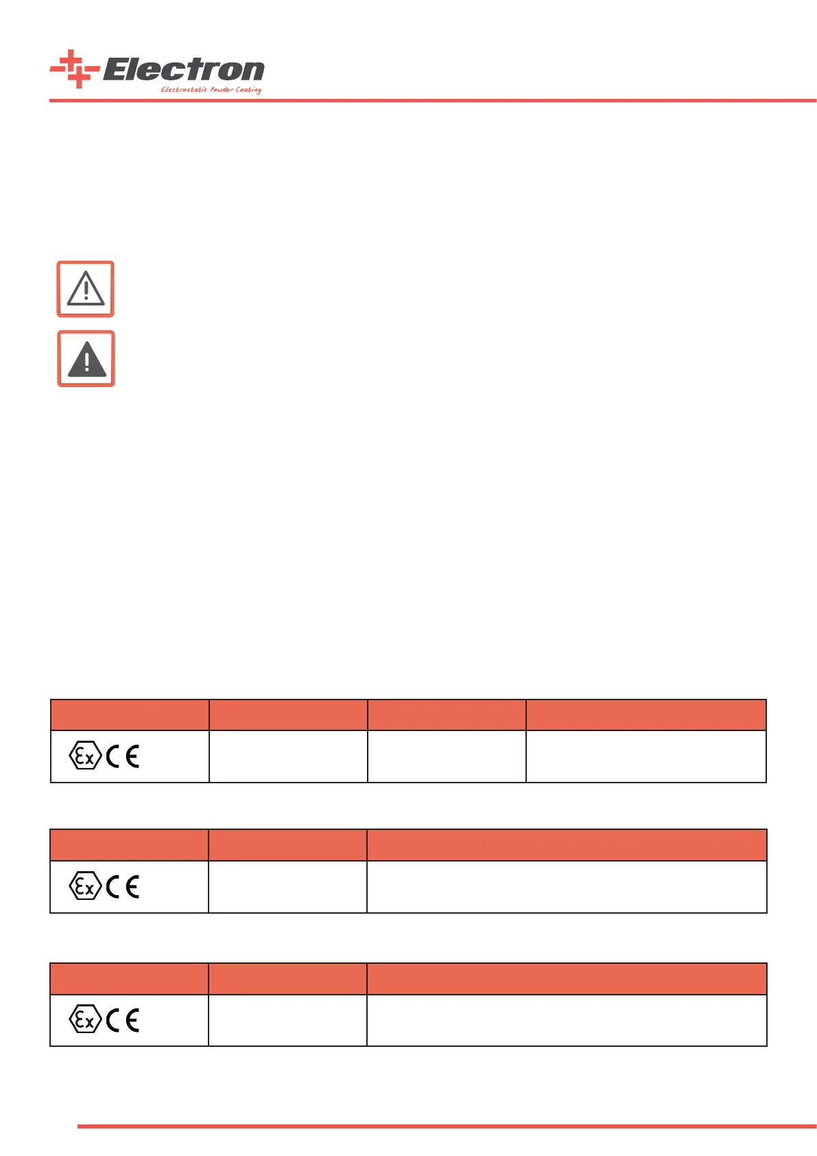 • Start-up is forbidden until it has been established that the E-COAT Master has been set up and wired according to the