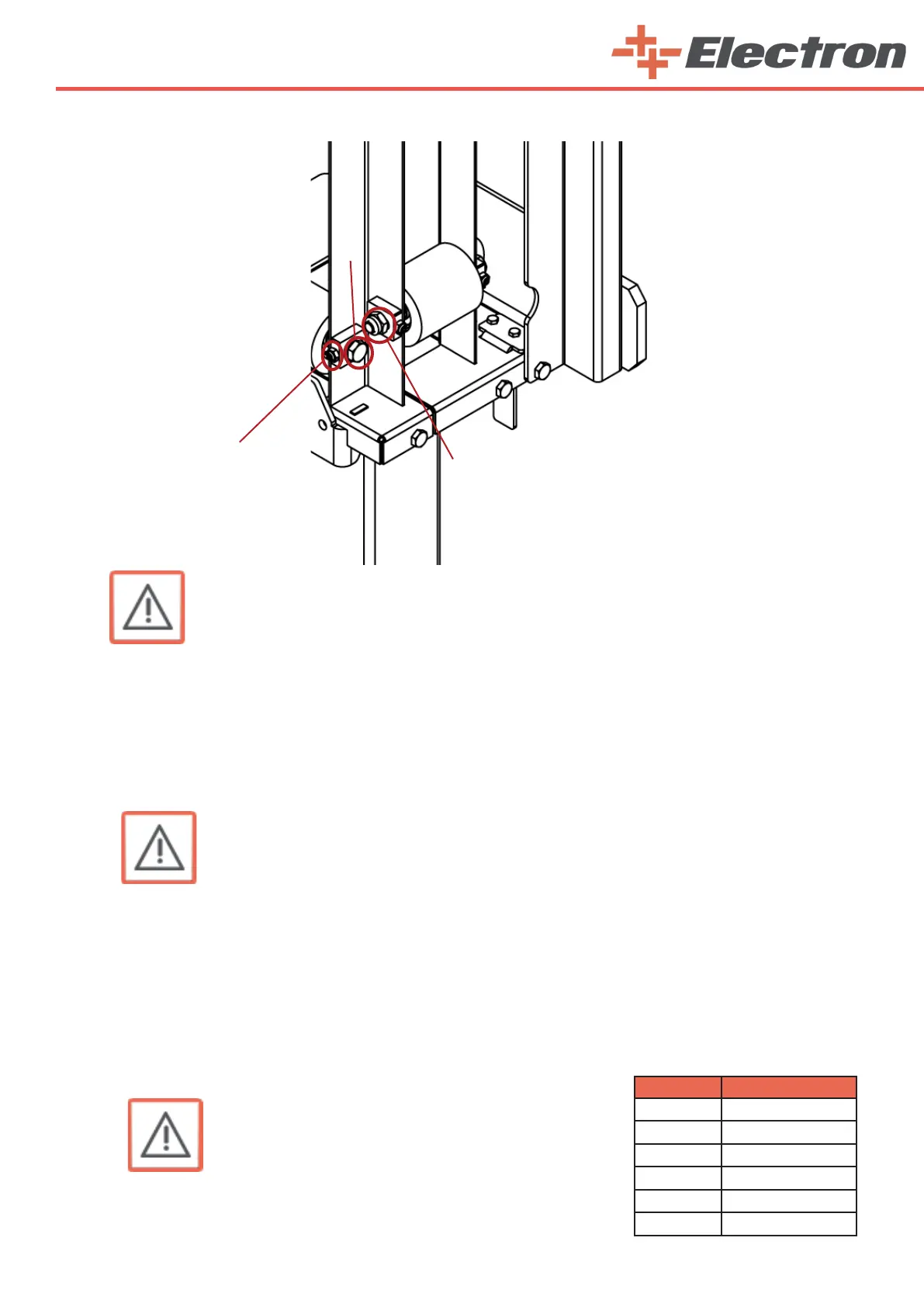 4. According to the number of guns specied in the table, insert the counterweights to the threaded