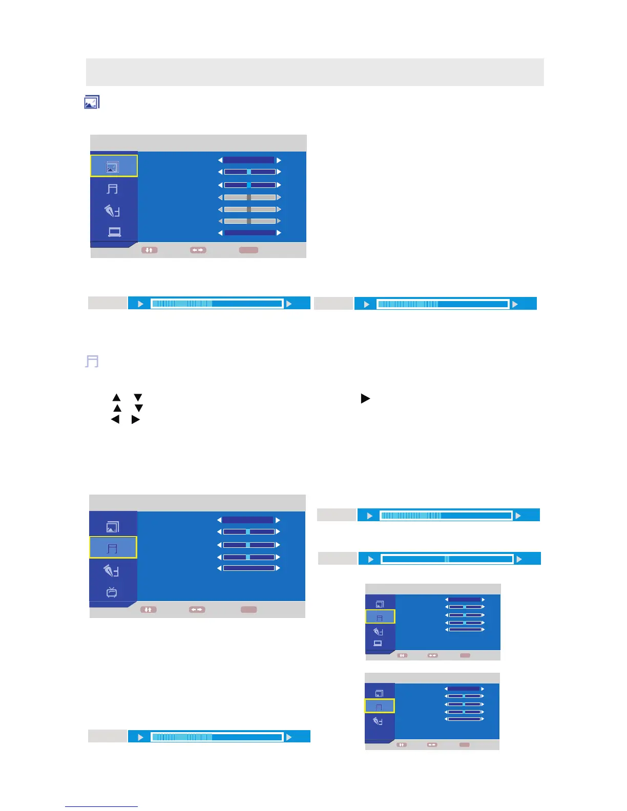 4. Press the MENU button to return to previous menu, repeat step 2 to adjust other settings.