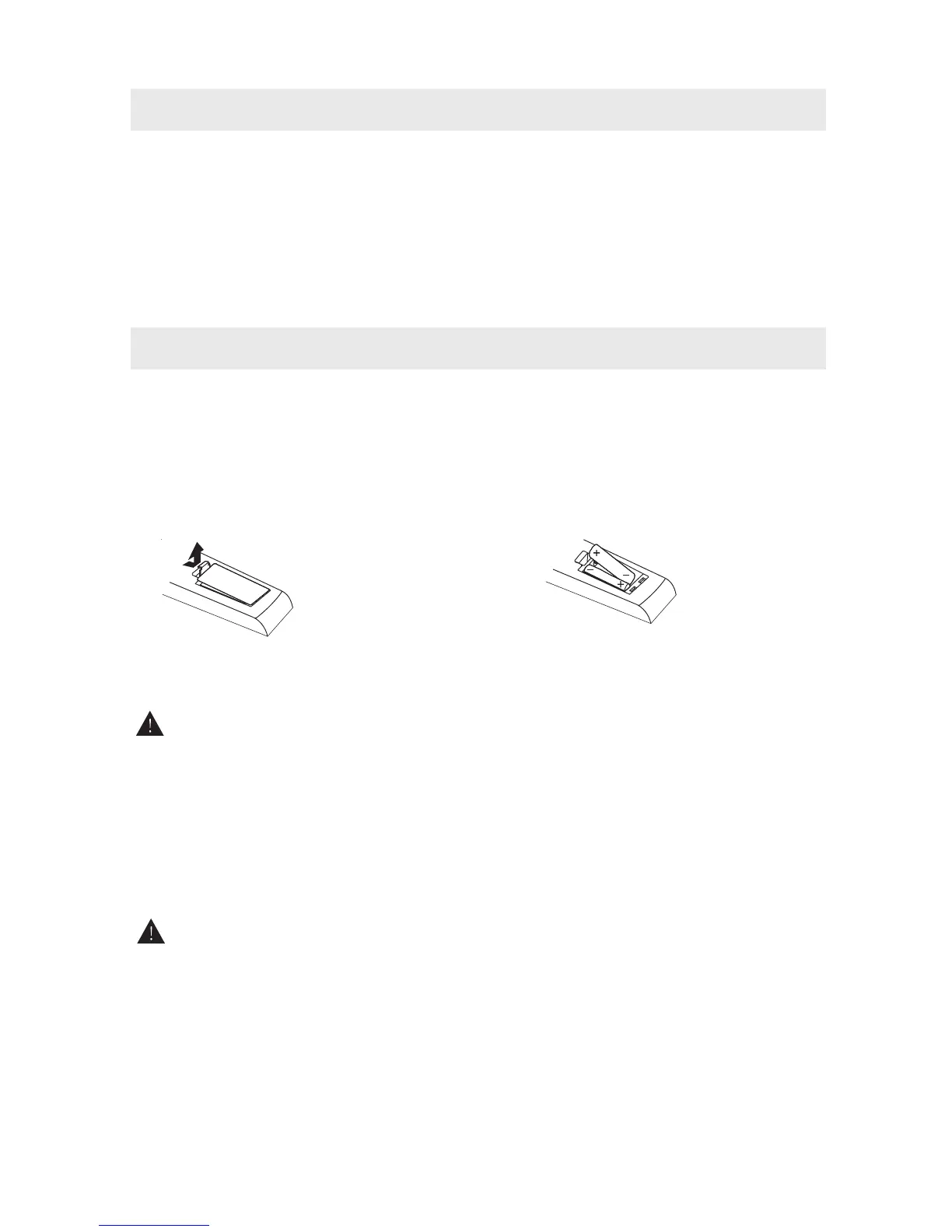 • If the remote control is not going to be used for a long time, remove the batteries to avoid