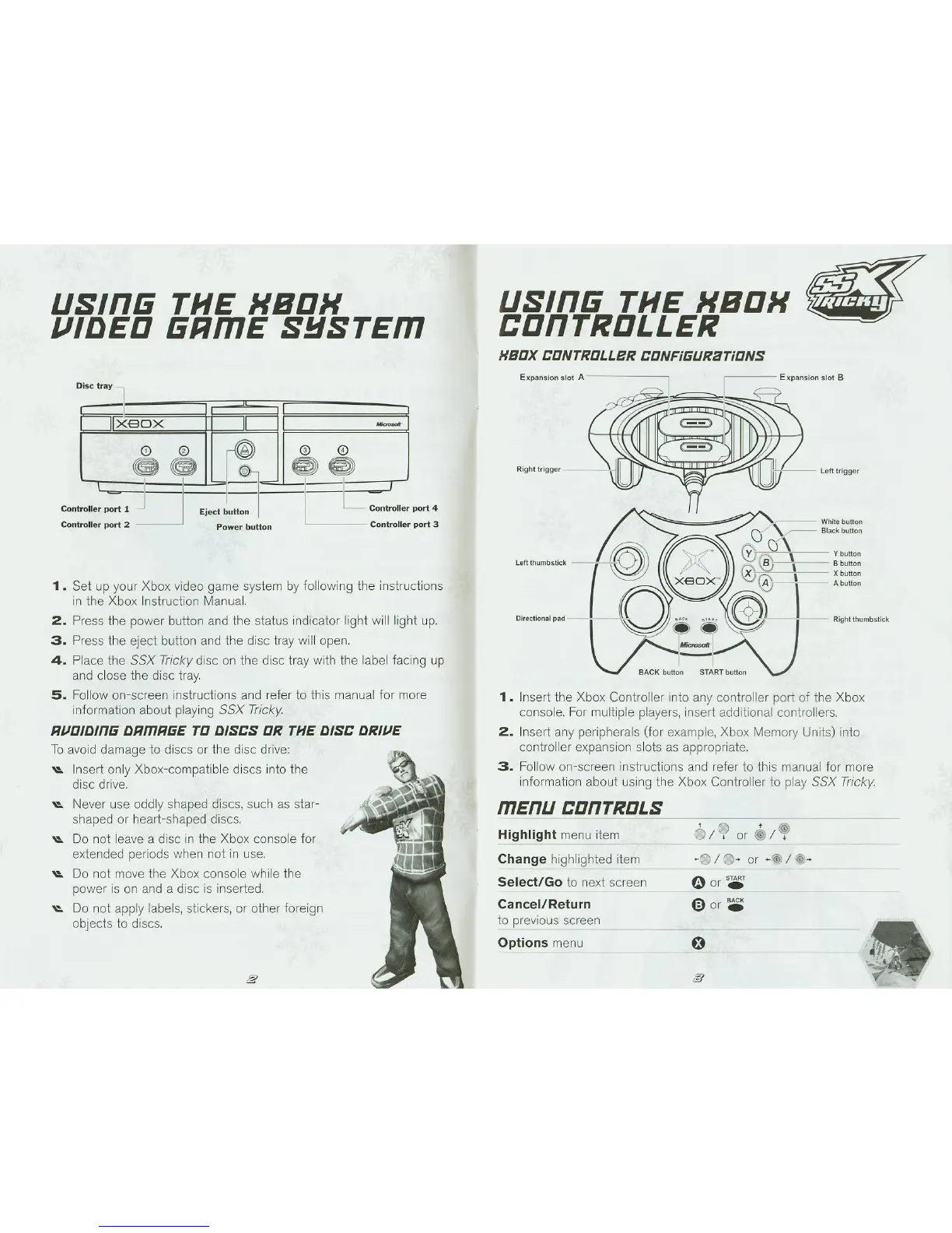 Electronic Arts SSX TRICKY - Using the Xbox Video Game System; Using the Xbox Controller; Menu Controls