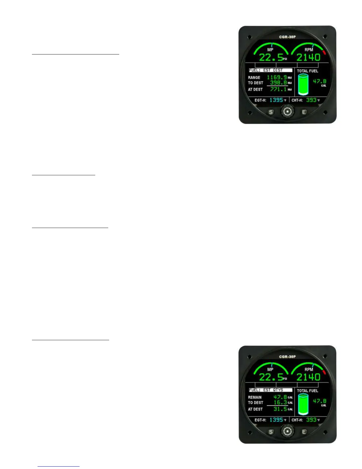 (white area), the “FUEL” annunciator on the Main screen will blink. The