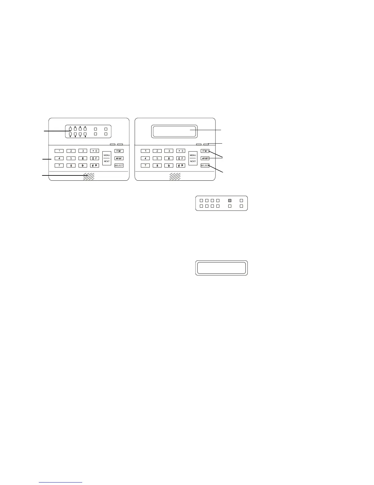 zones, trouble situations, power and arming. The keypad is used