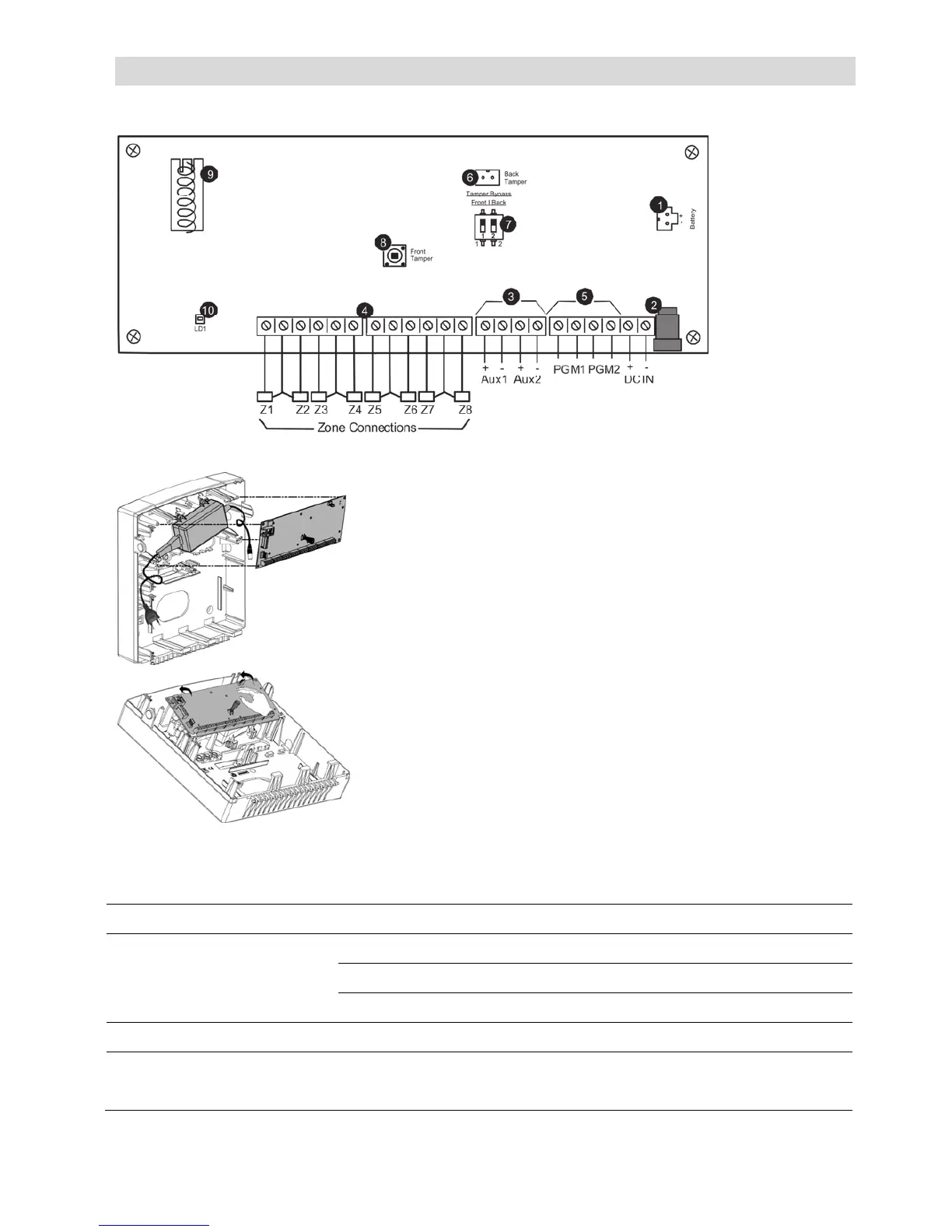 Zone inputs (loop type configurable in programming)