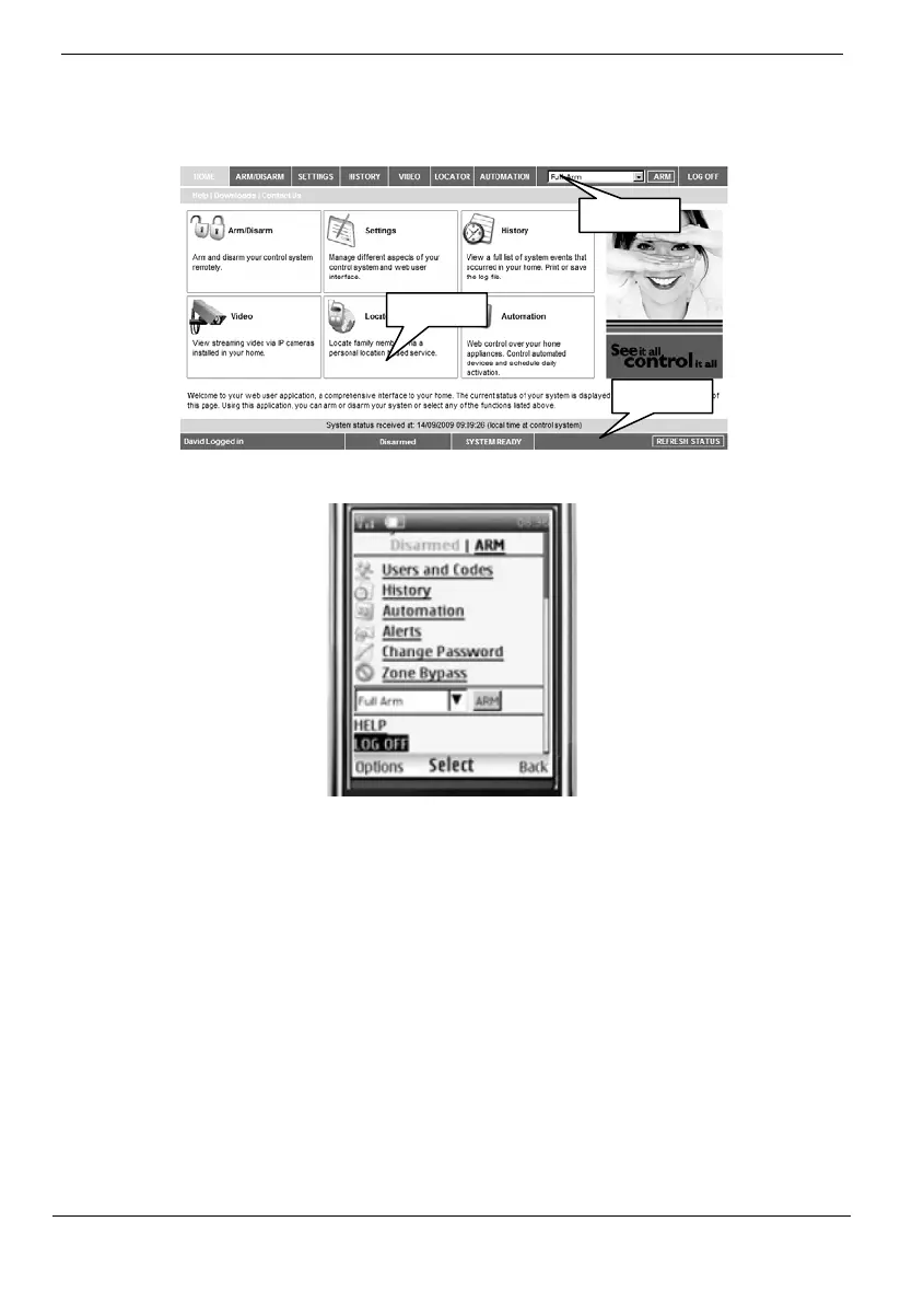 TheMenuBarincludestheMainMenu,arm/disarmoptionslist,andtheLogOffbutton.