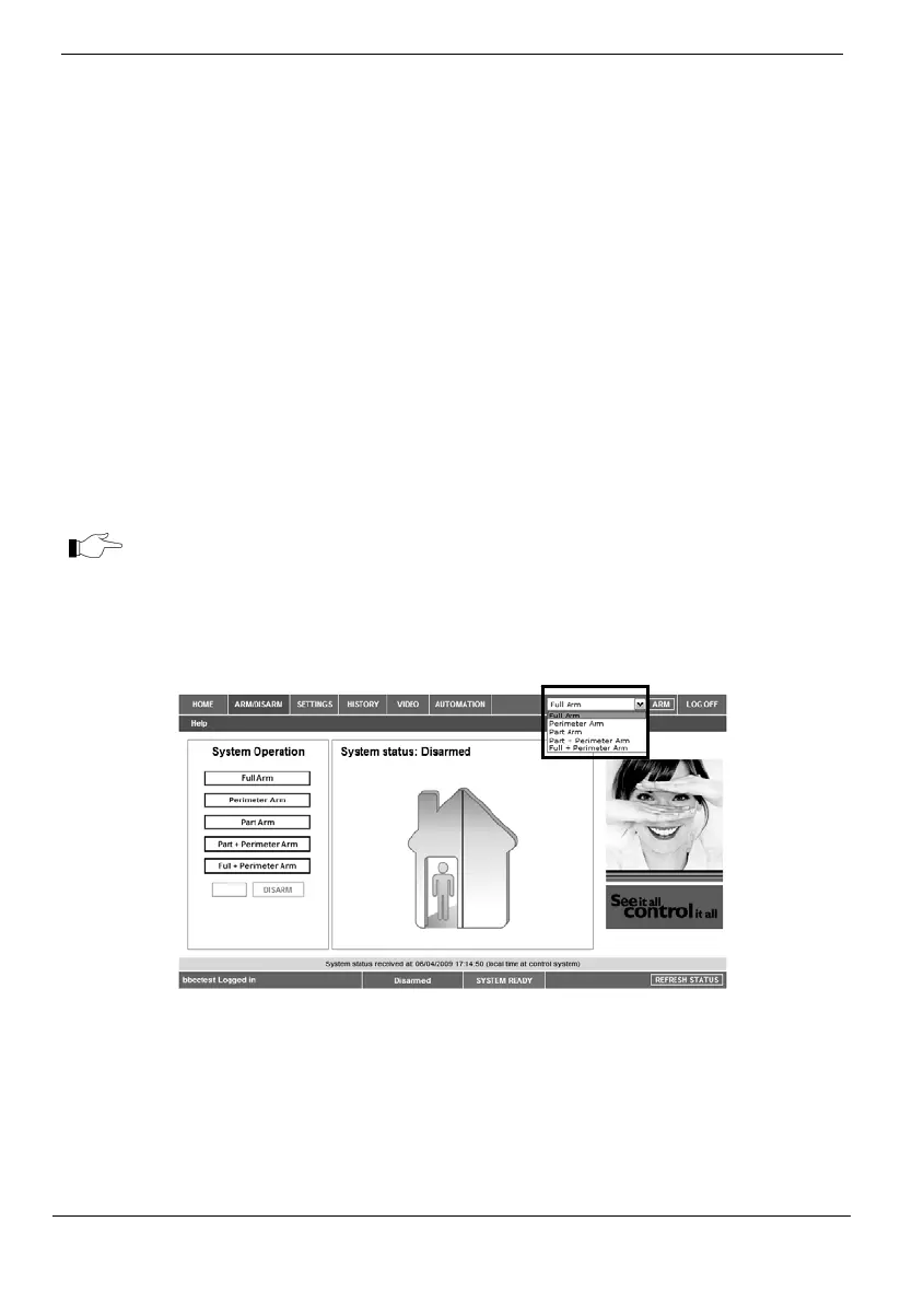 YoucanarmanddisarmthesystemusingtheArm/Disarmdrop‐downbox(upper‐right