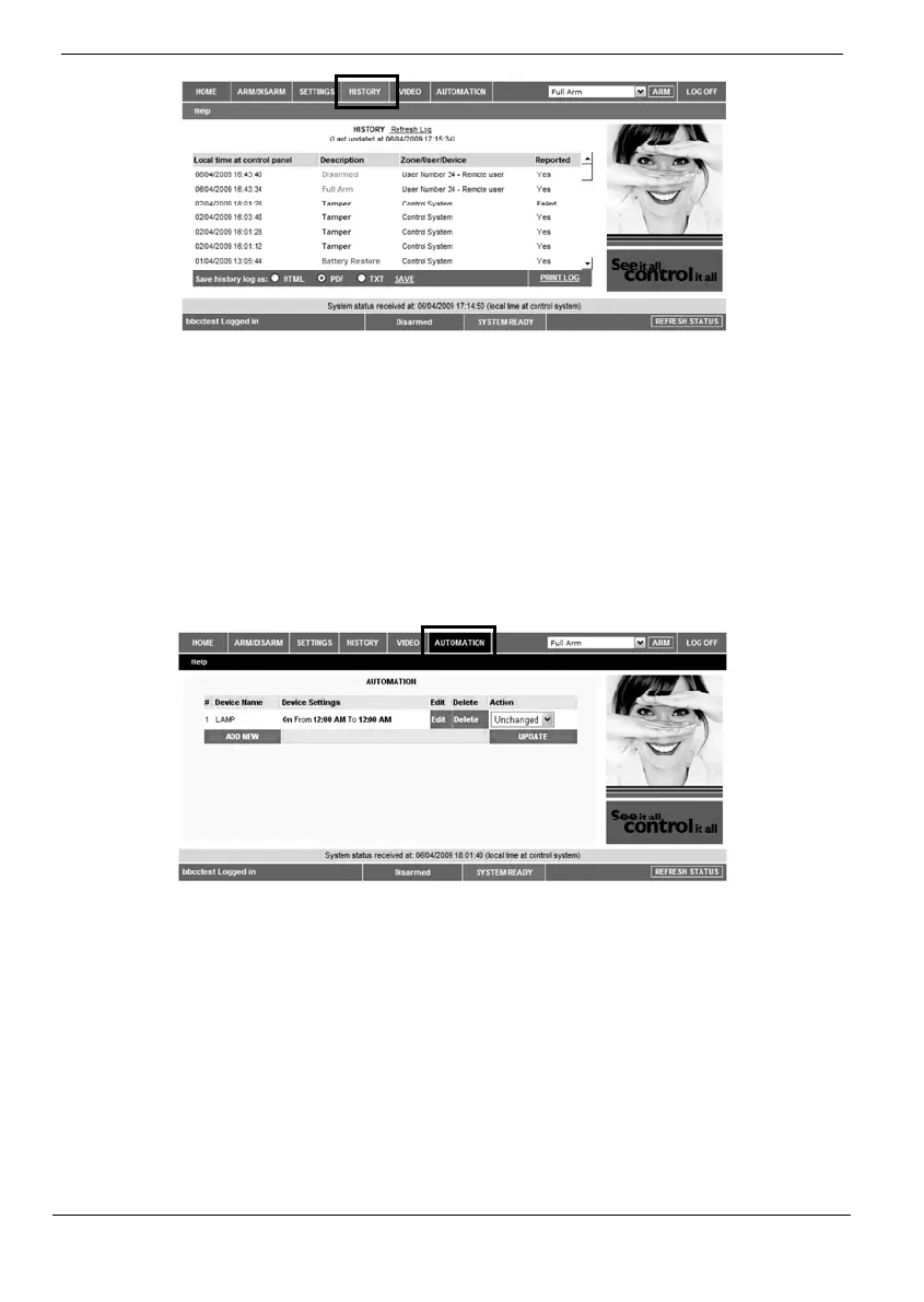 Using IP video cameras installed in your home, the Web Application enables you to