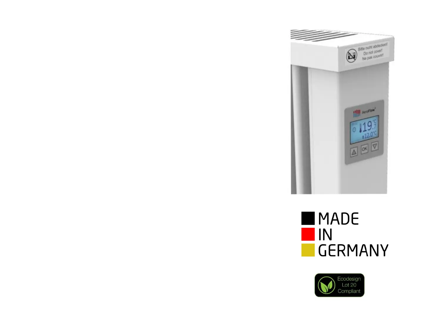 Each Aeroflow German radiator has a built in digital electronic room thermostat and 7