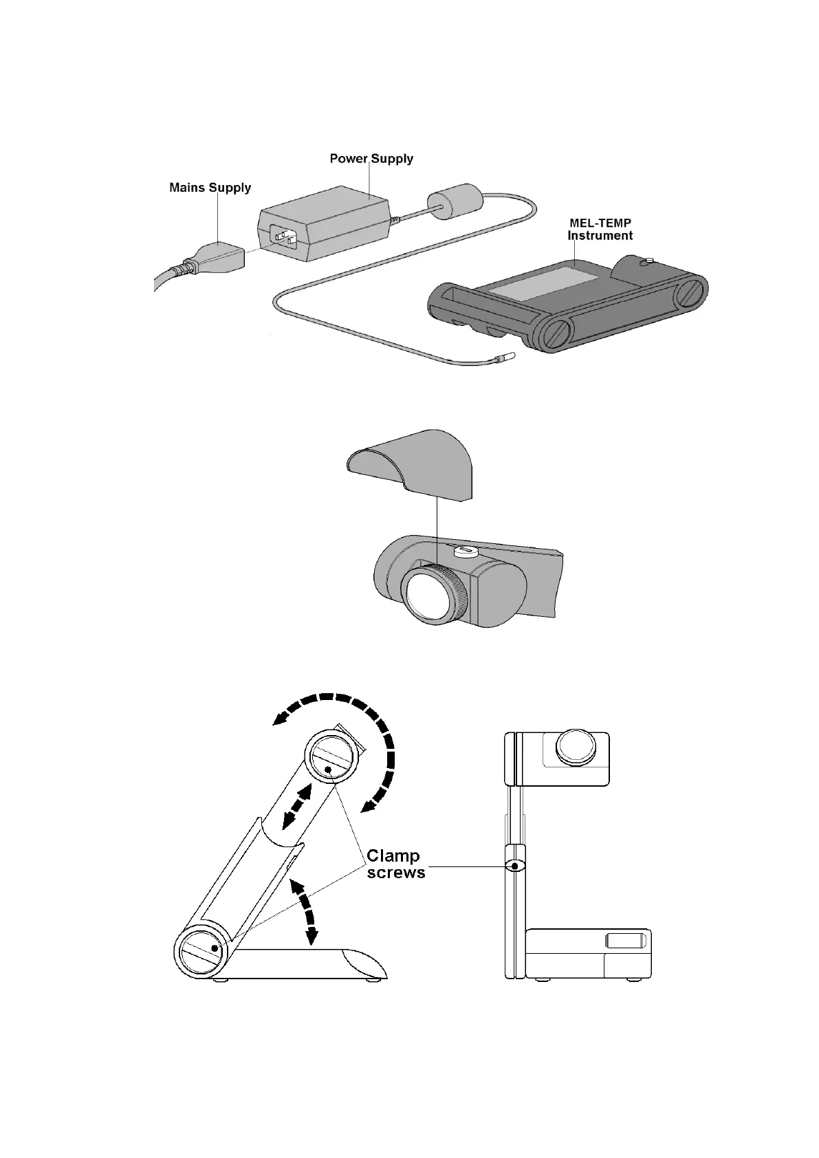 7.1.1. Connect the mains supply lead and power supply to your MEL-TEMP as illustrated.