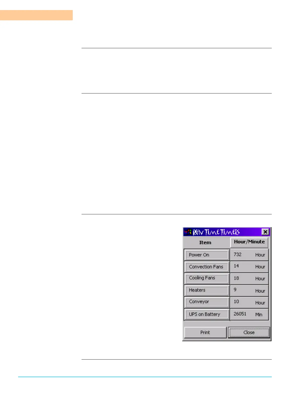 Introduction The Run Time Timers track the run time for six (6) different functions. Access the